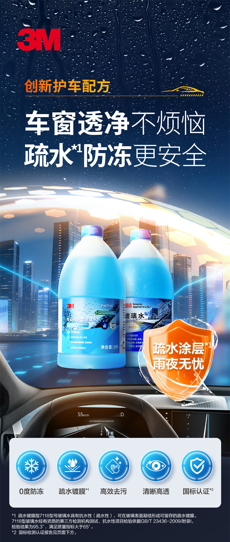 首页> 燃油养护用品> 3M防冻玻璃水-25℃ 强力去油膜四季通用疏水型去污汽车专用玻璃水